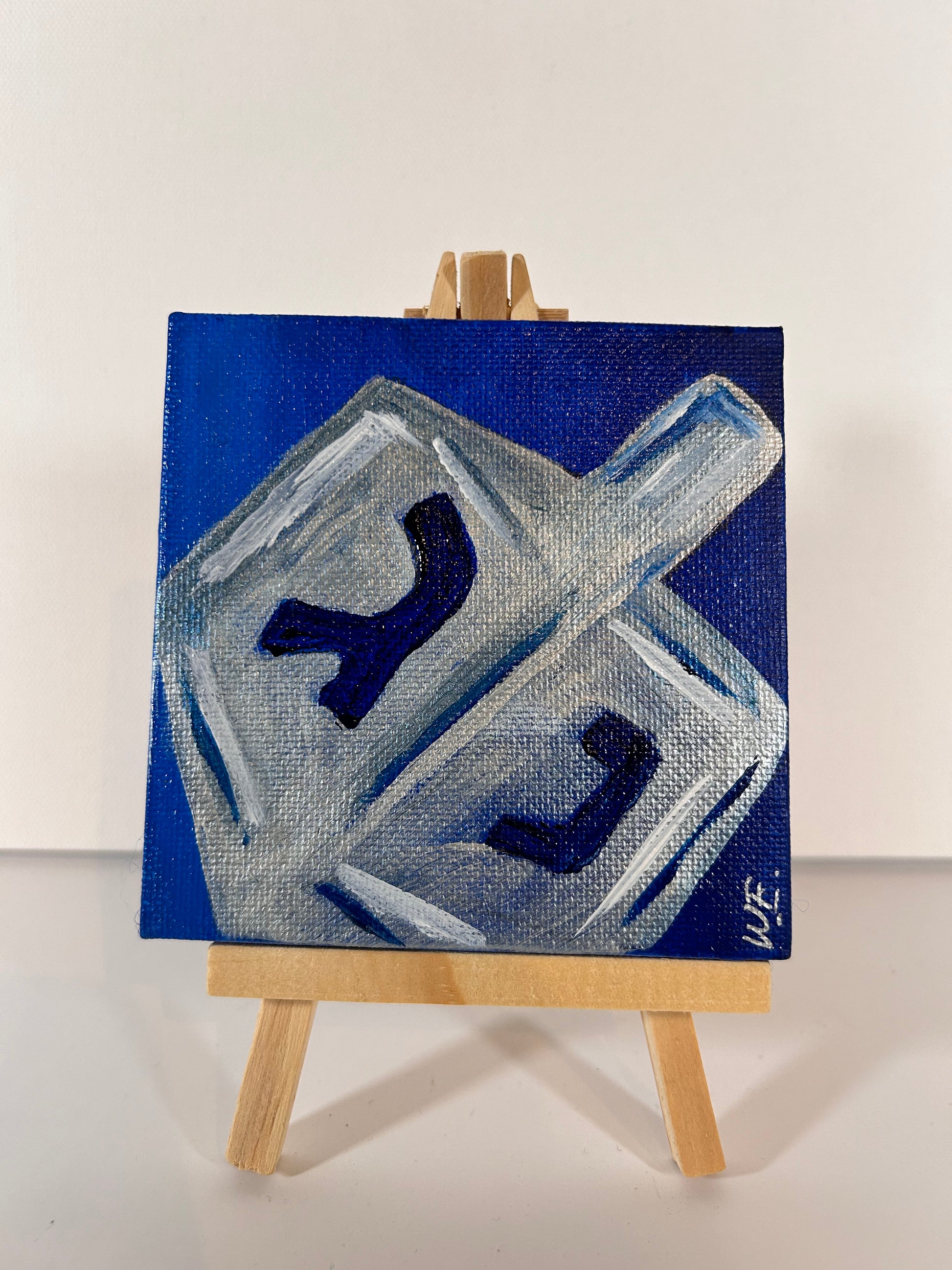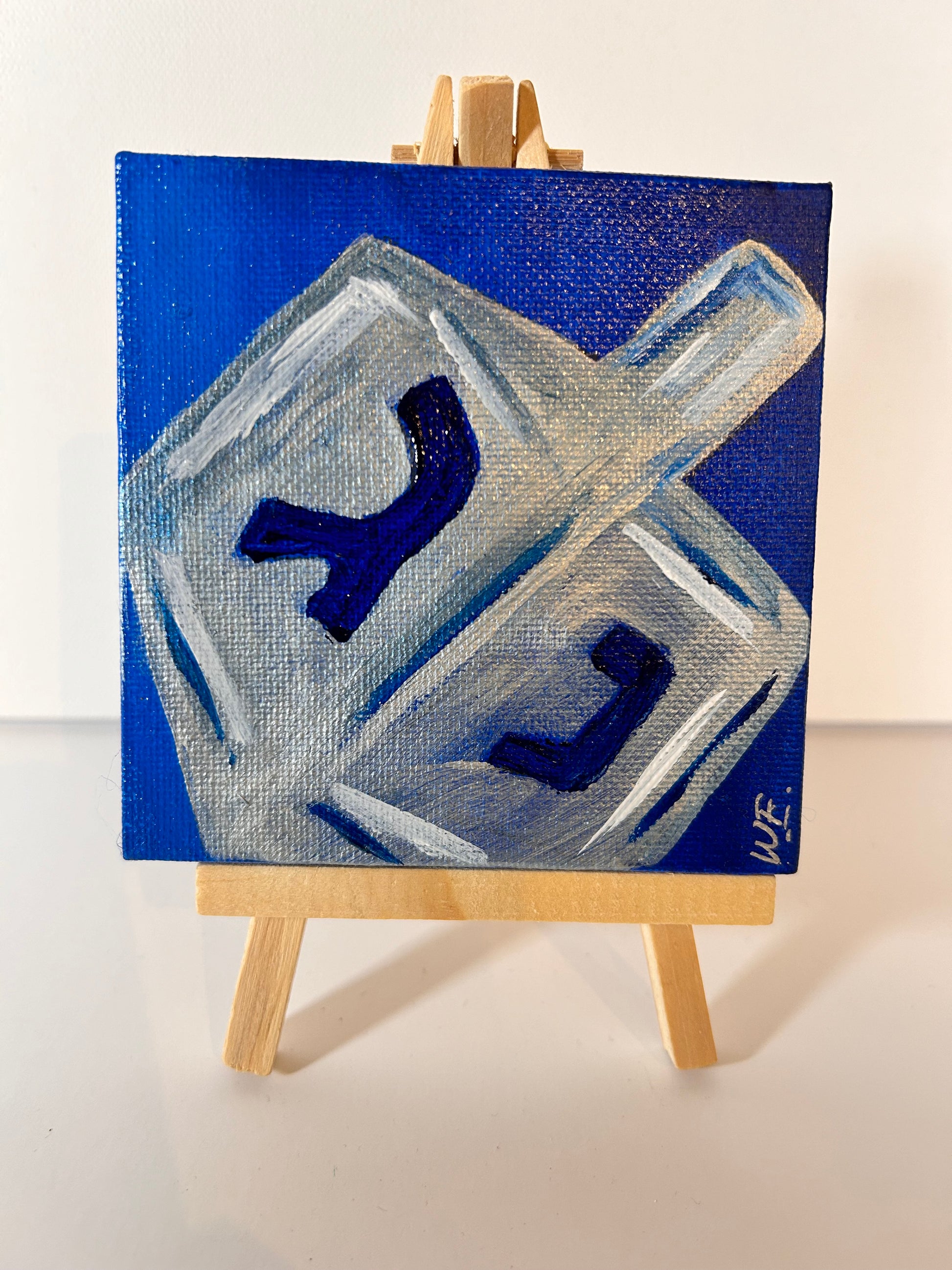 Abstract original paint acrylic on canvas 4”x4” includes stand.