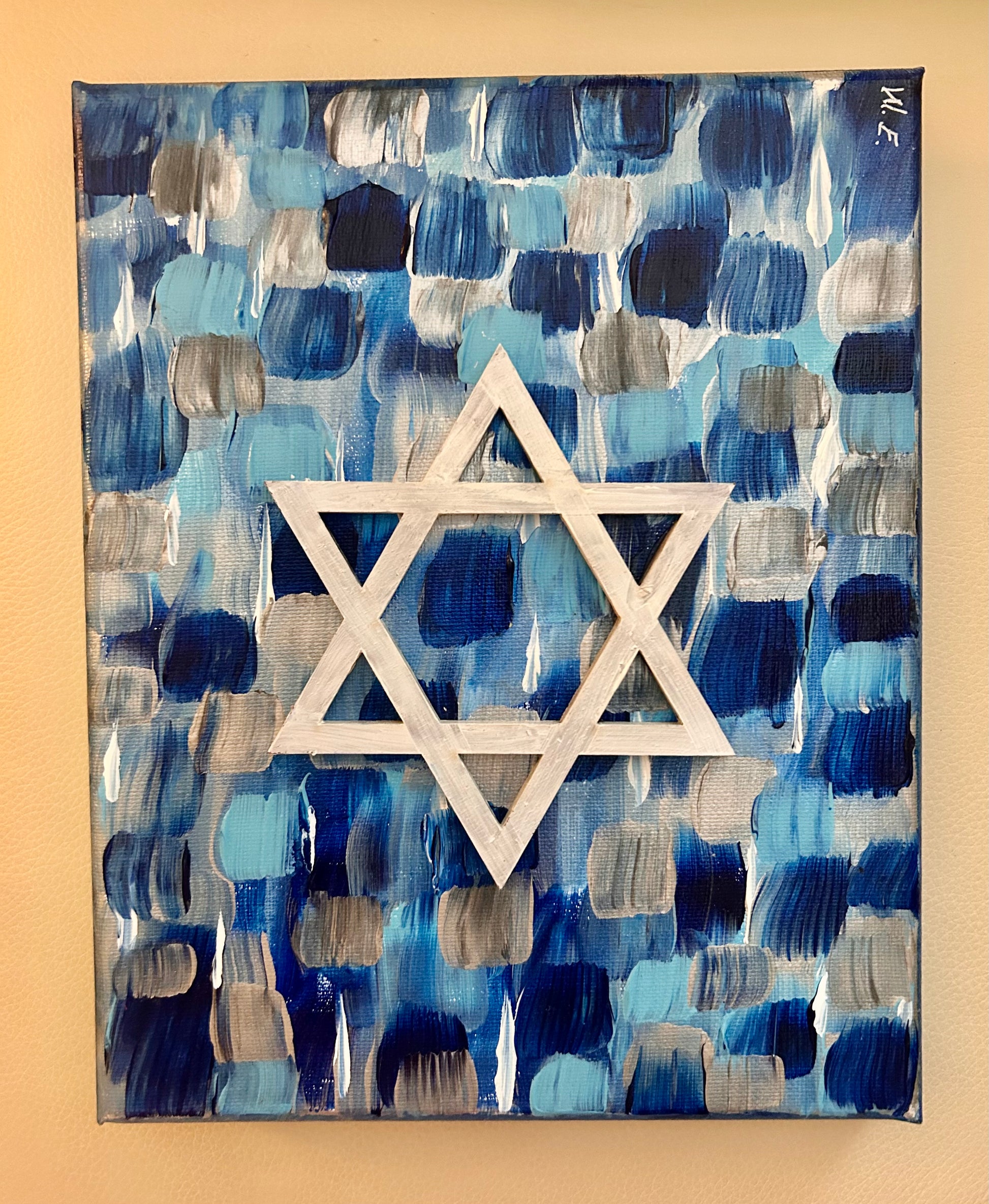 Unique painting 8”x10” original acrylic art mix with 3D wood Jewish star.