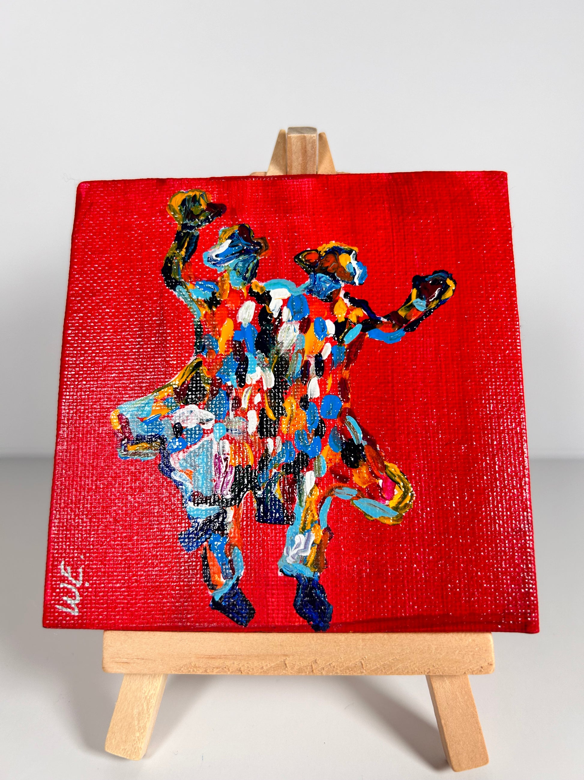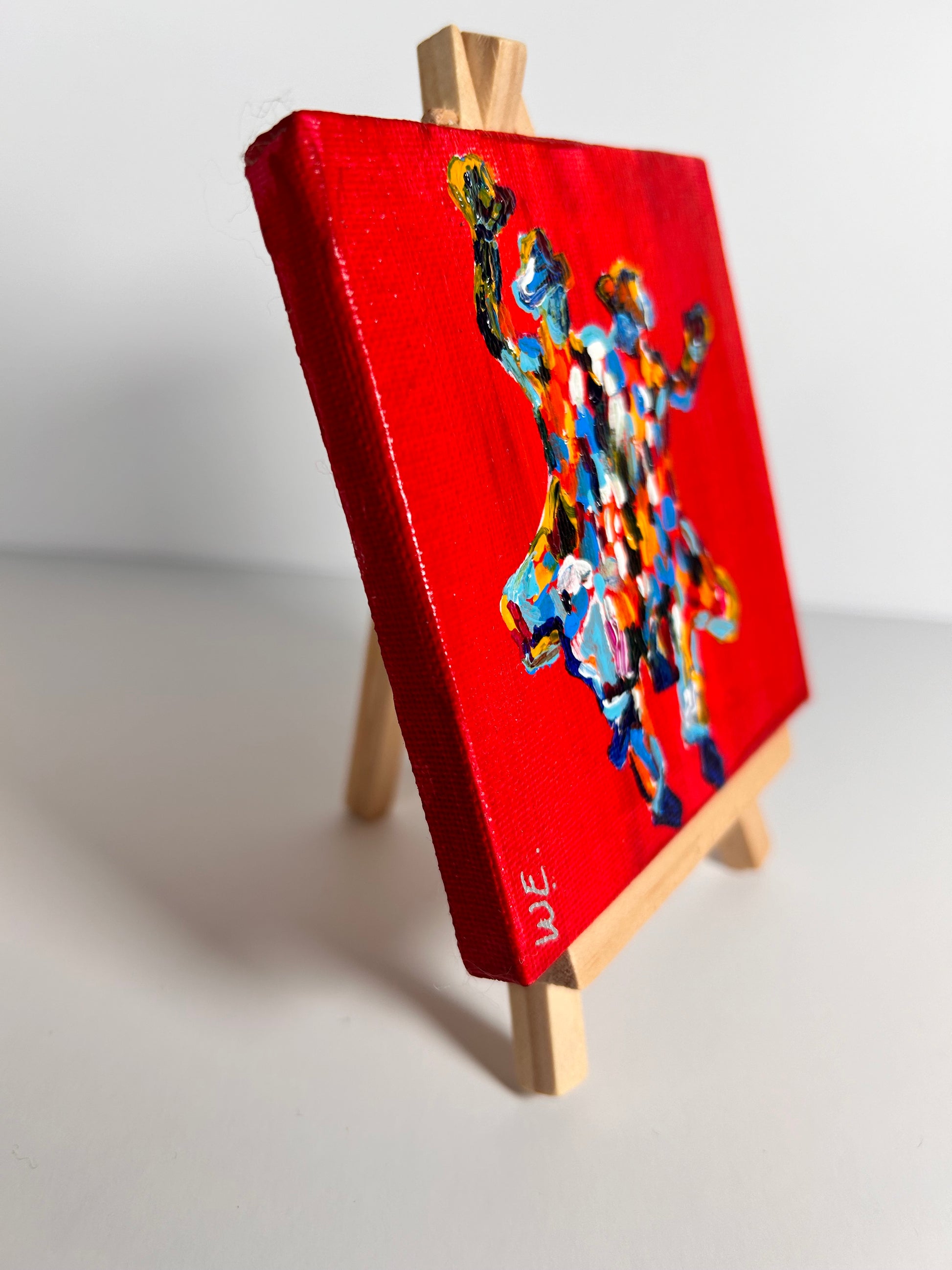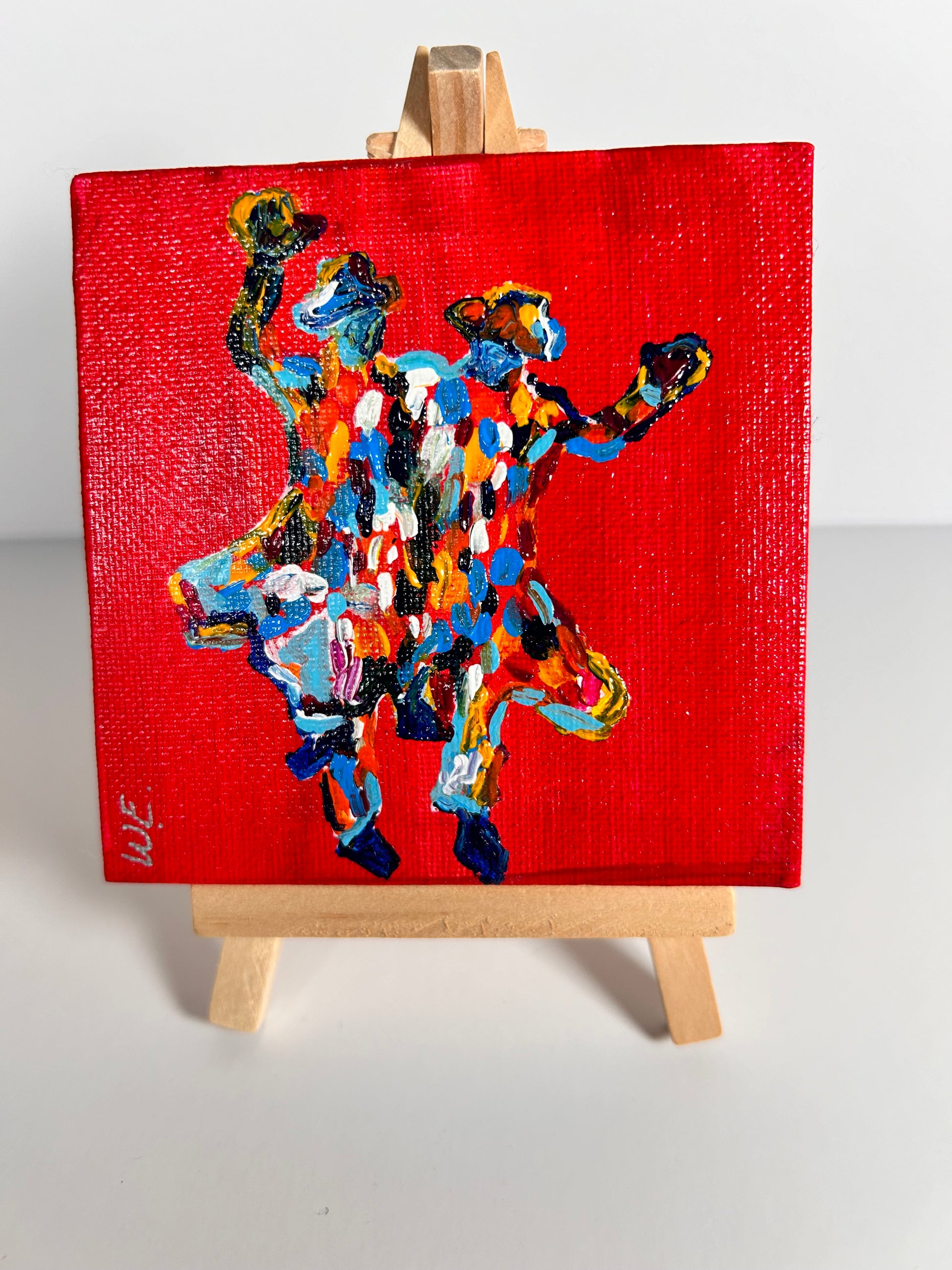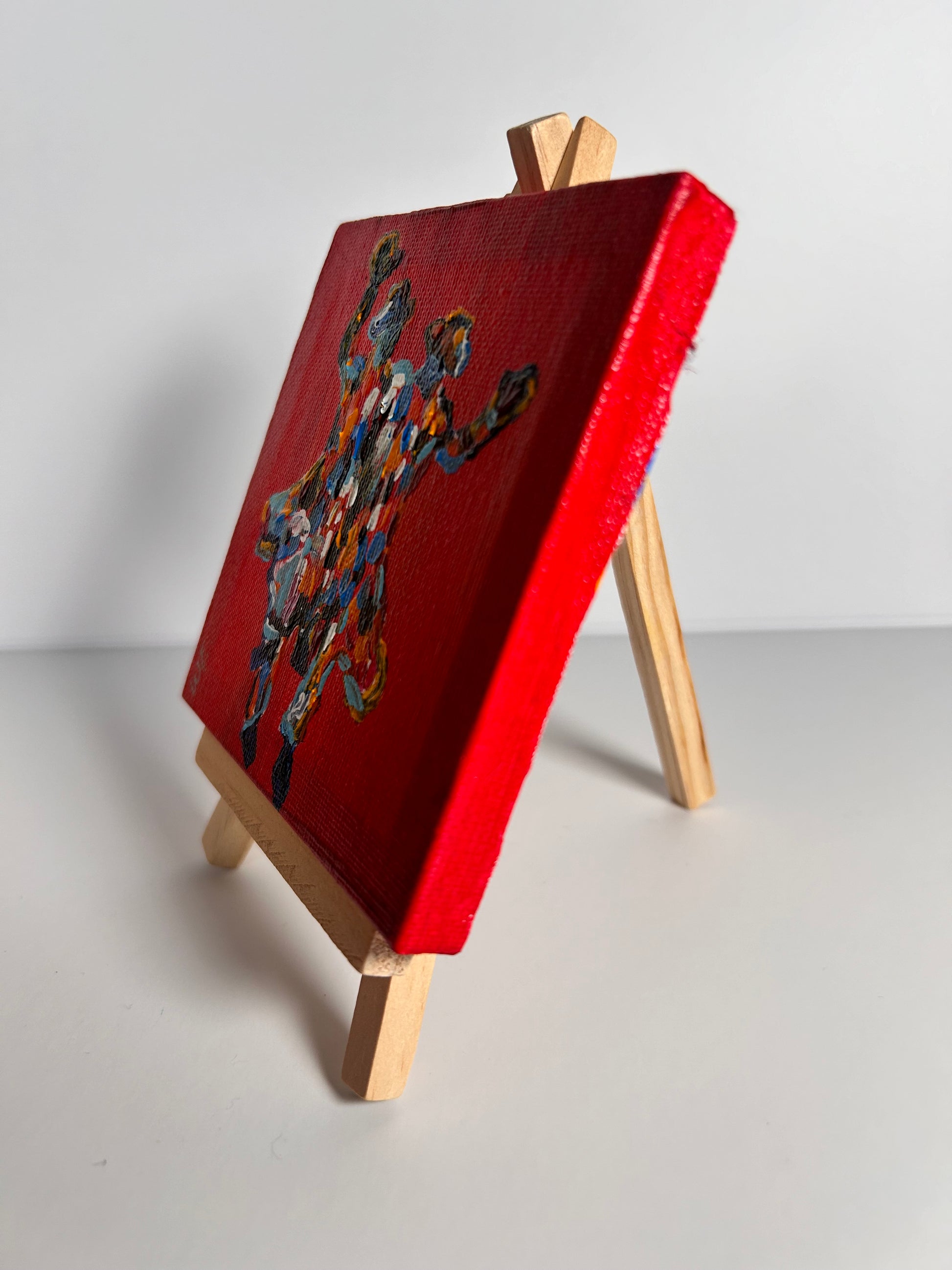 Original acrylic mini art canvas of dancing Rabbi includes stand. Perfect gift to share the joy of HaShem (The Lord)
