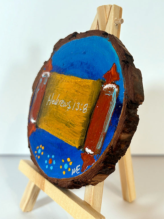 Abstract Acrylic Art Painting Hanukkah design 4x4" canvas with stand. Original painting.