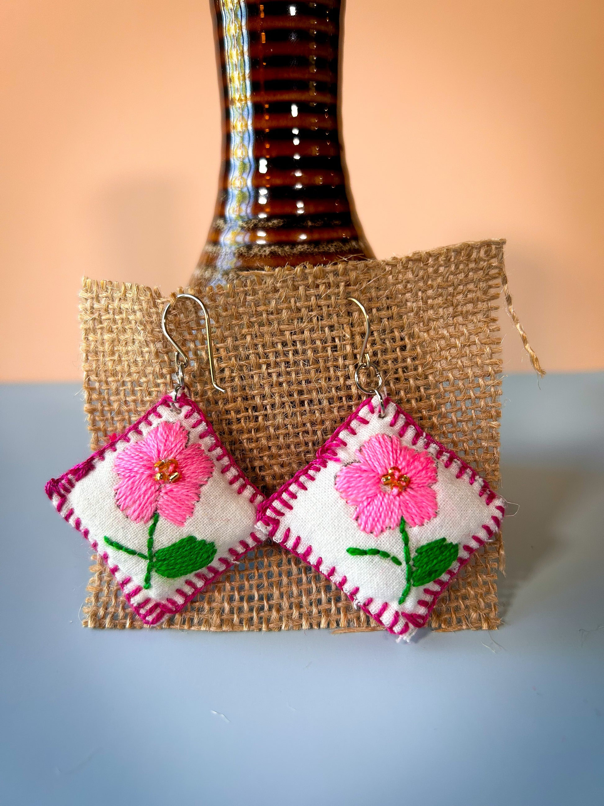 These 1.25-inch earrings are crafted from artisan fabric and embroidery by hardworking women in Panchimalco, El Salvador—a town rich in tradition and the home of my great-grandmother. These women care for their children through the creation of these beautiful products, making each piece a true labor of love and culture.